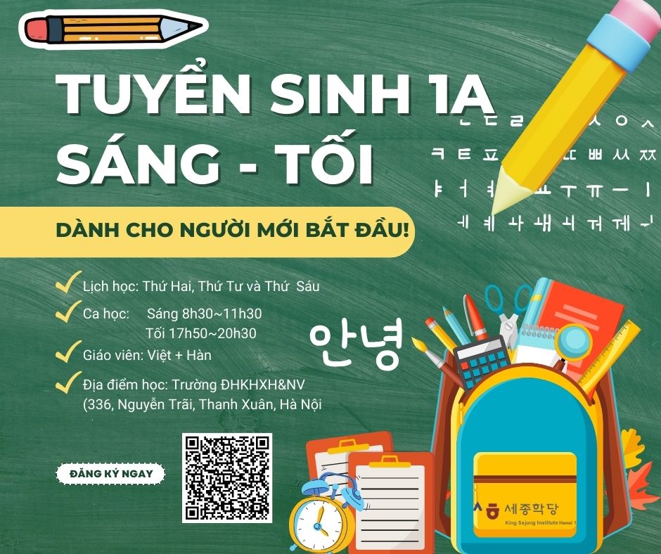 * SƠ CẤP 1A – SÁNG THỨ 2, THỨ 4, THỨ 6 (GV Hàn + Việt)