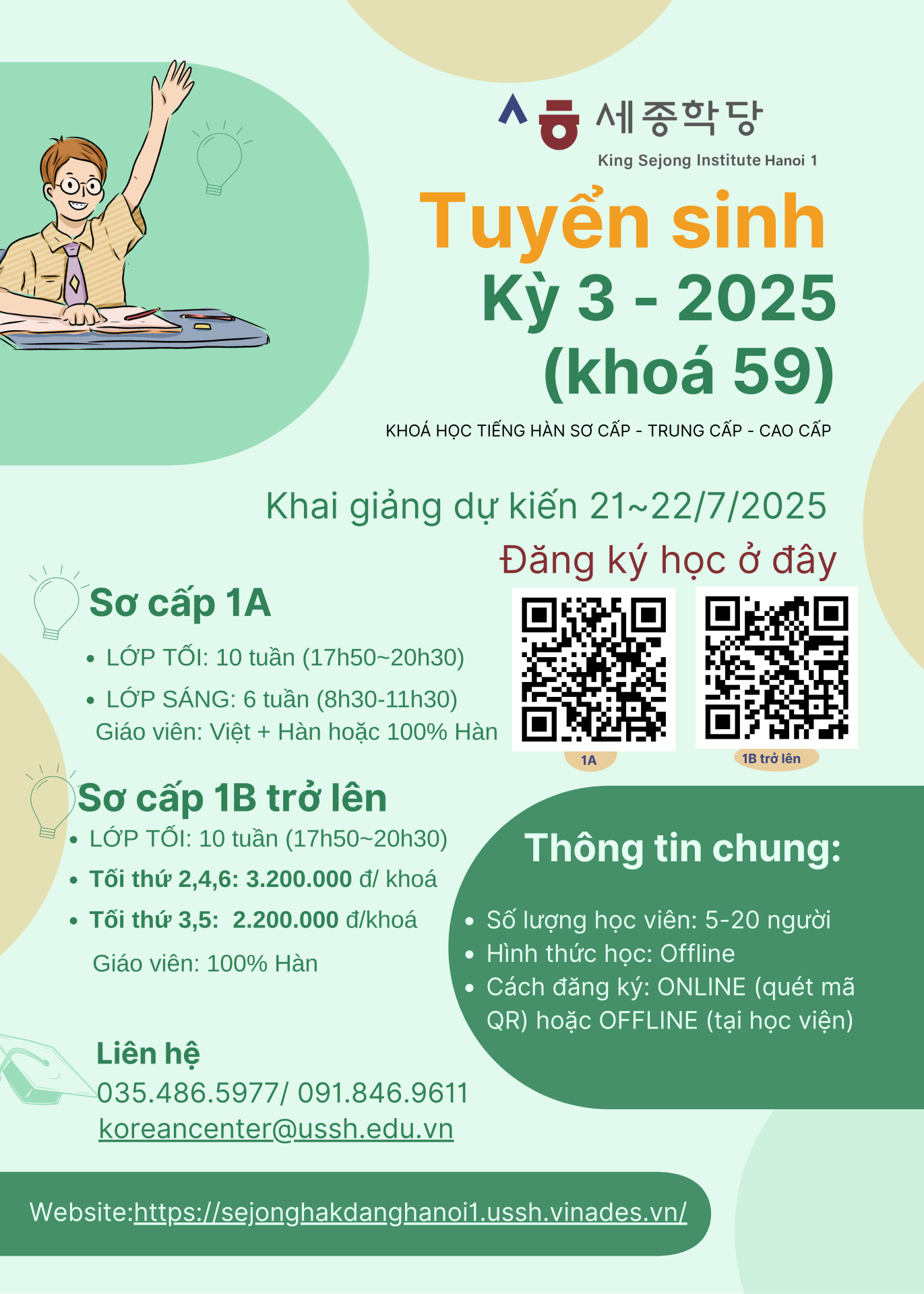 ĐĂNG KÝ LỚP TIẾNG HÀN SEJONG (KỲ 1 NĂM 2026)