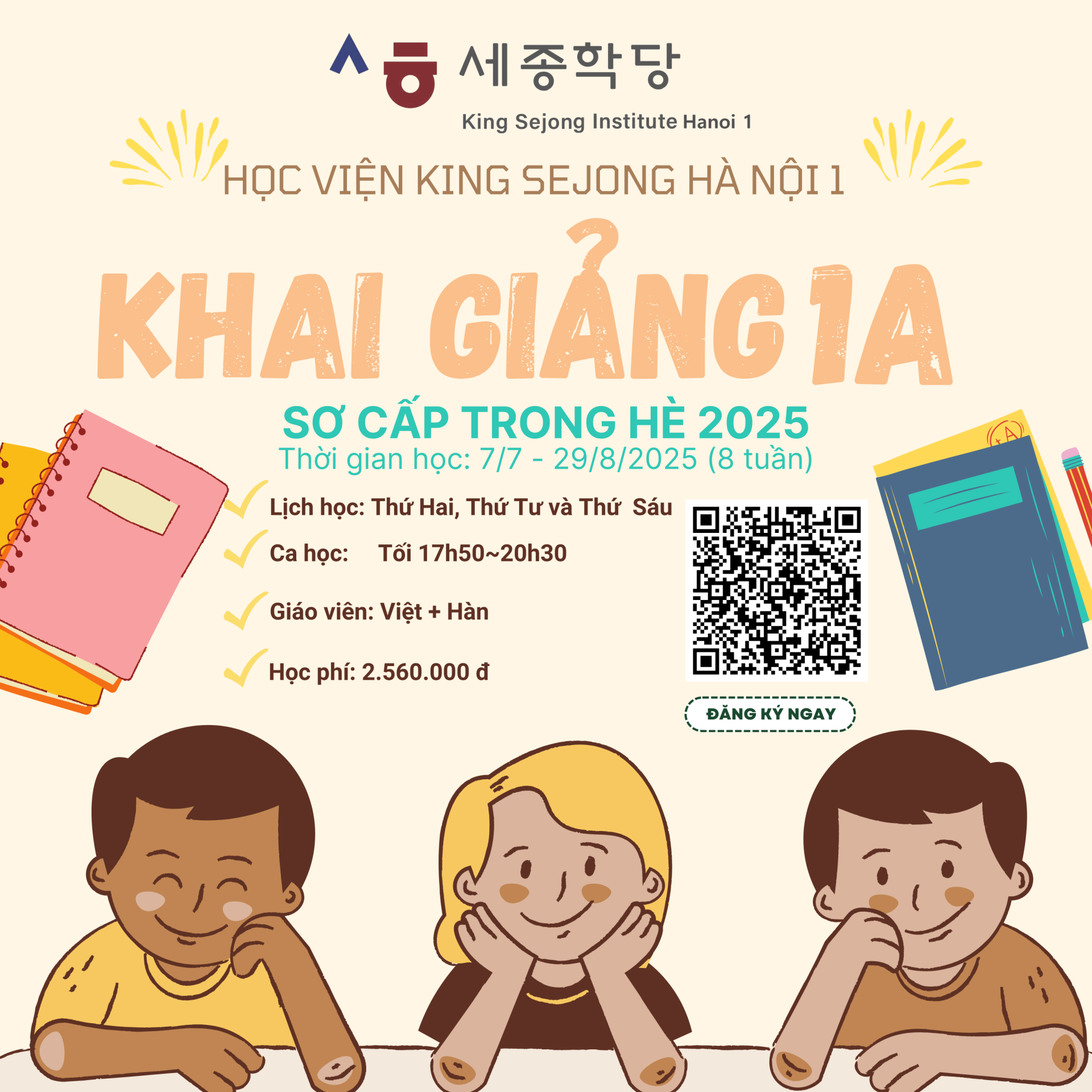 Học Viện King Sejong Hà Nội 1 thông báo về việc tuyển sinh Sơ cấp 1A – HÈ 2025